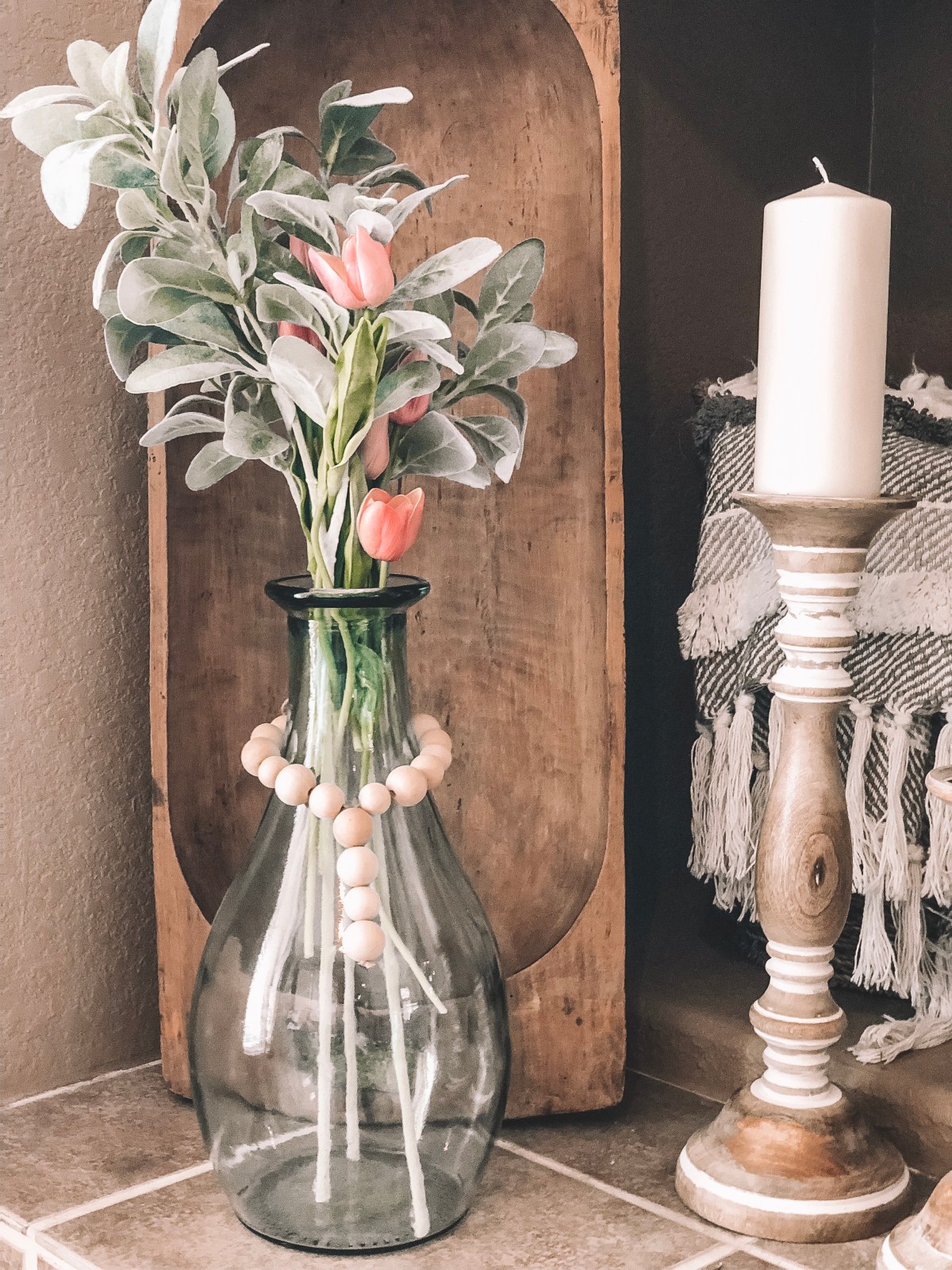 Wooden BeadsI just strung them through some left over twine from Christmas.